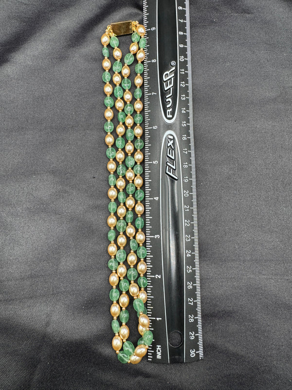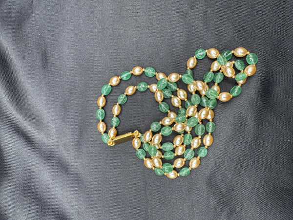 Strawberry Emerald beads with Swarovski pearls double line chain