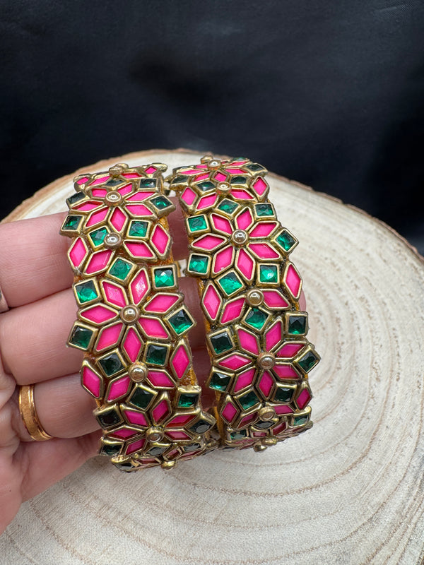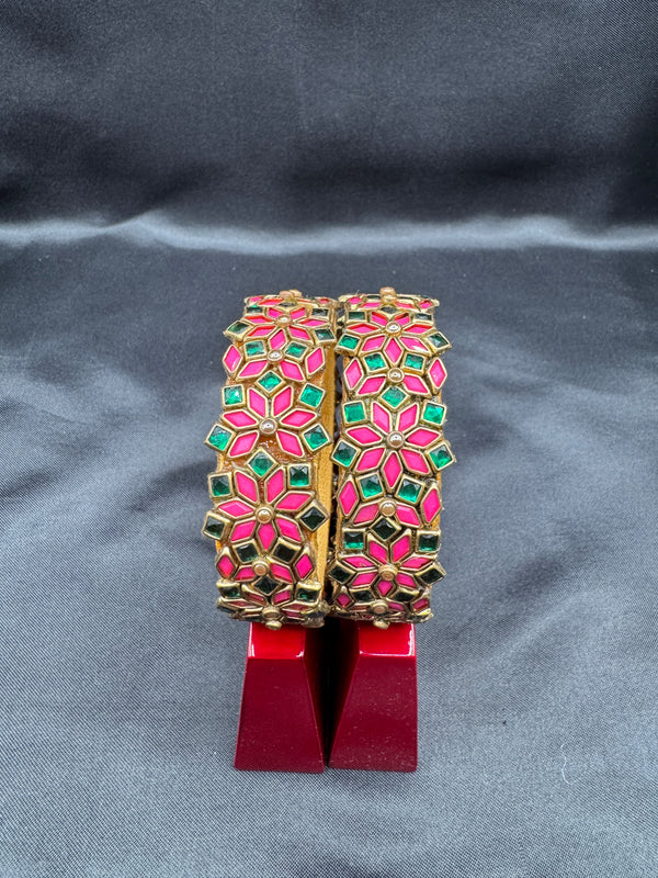 Bright pink and green color handmade Kundan kada banglesHandmade item   🌸 C O N N E C T . W I T H . U S 🌸Please share/ tag us with your photos adorning our jewelry on our social media pages :https:...