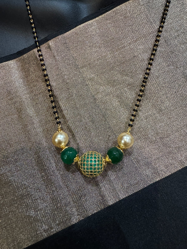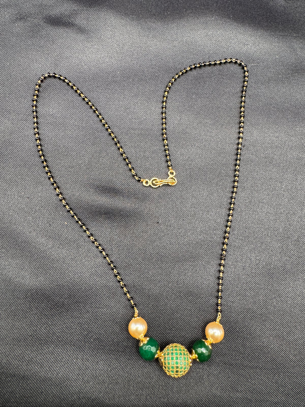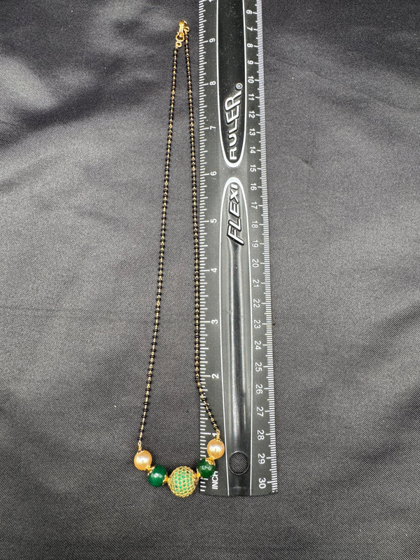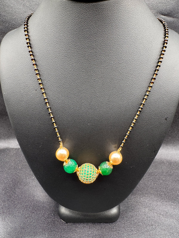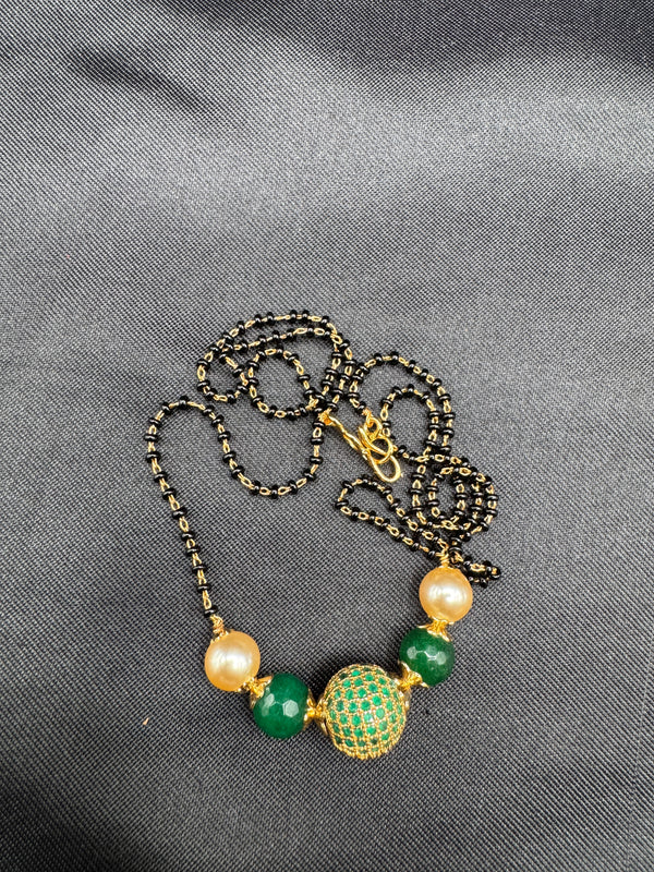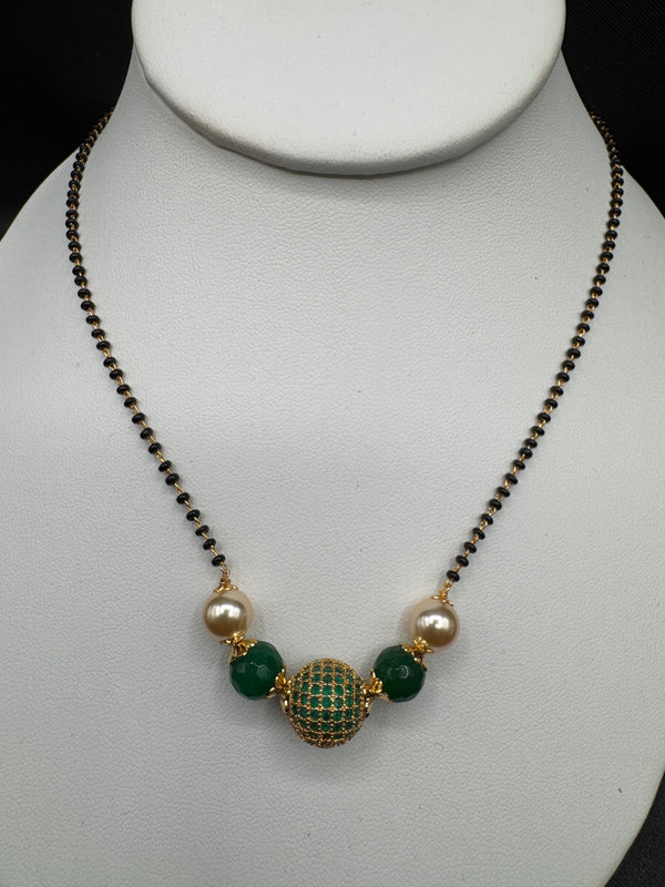 Green stone ball and Swarovski pearls with a single line of black bead chain